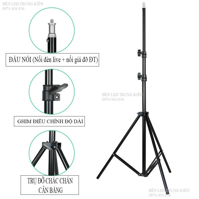 Giới thiệu Chân đỡ đèn livestream Cao Cấp chiều cao tối đa 2m1, Đế 3 chân loại to siêu chắc chắn đa năng tiện dụng
