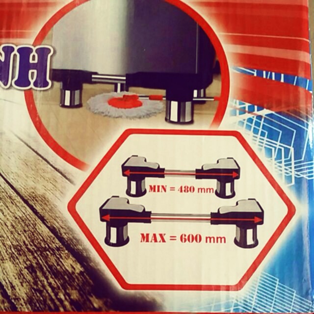 Chân đỡ máy giặt tủ lạnh inox Cảnh phong,chánh phát. Điều chỉnh kích thước từ 480-600mmThuận tiện làm vệ sinh , lau nhà.