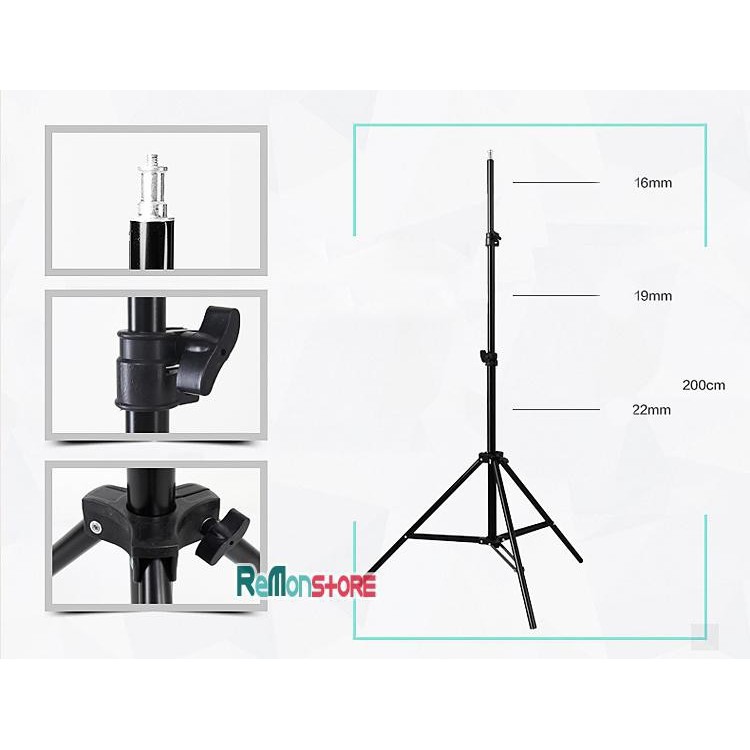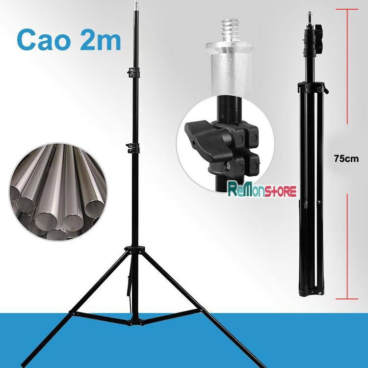 - 01 x Chân đứng 2m cho đèn LiveStream ốc 1/4 gắn được khung kẹp điện thoại ipad máy ảnh