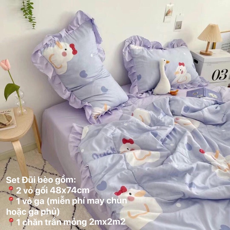 - Bộ chăn ga gối Cotton ĐŨI 100% là dòng chăn ga chuyên biệt dùng cho mùa hè, thu với chất liệu cotton nano (cotton đũi) cực kì mát lạnh, ruột lông vũ thoáng khí, mềm mịn sờ sướng tay vô cùng.