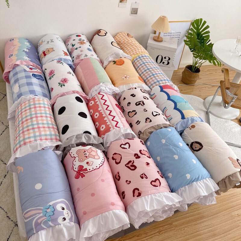 ✅ 01 CHĂN MỎNG 200x220cm đã được trần một lớp bông tinh khiết kháng khuẩn (Lưu ý: Chăn đã kèm ruột, chăn trần mỏng có đường chỉ trên bề mặt chăn y ảnh ạ)