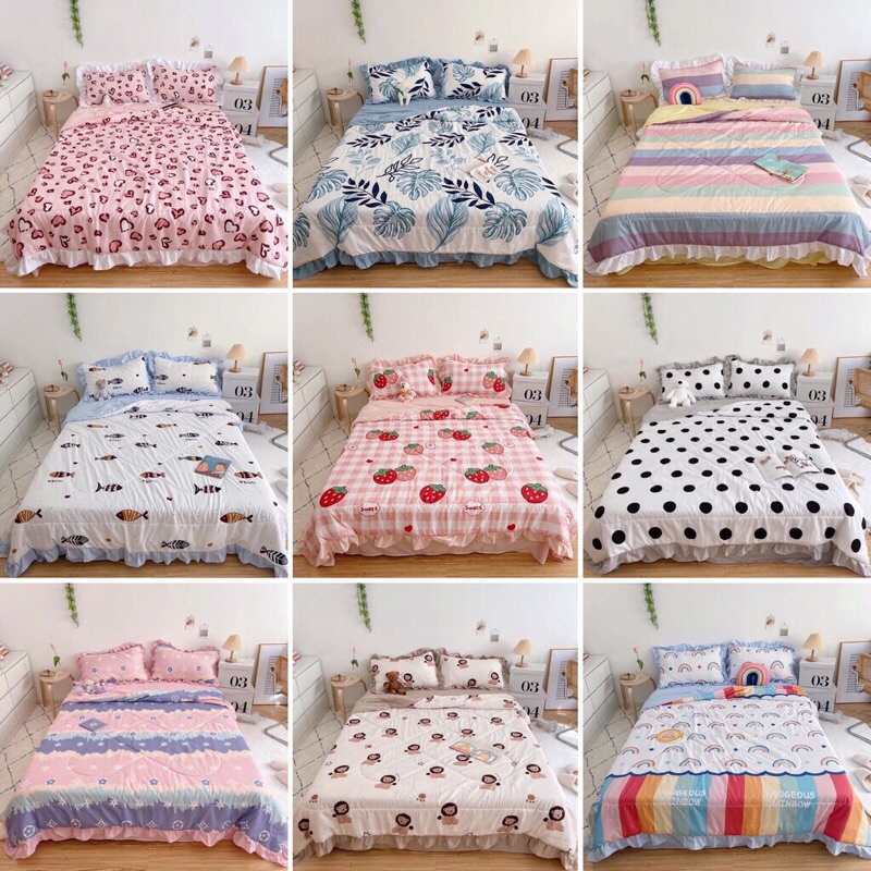 Nhà cửa & Đời sống > Chăn ga gối nệm > Chiếu điều hòa || Bộ chăn ga gối cotton ❤️ Cotton đũi bèo bộ chăn mền lót bông đủ màu đủ size ga Hàn Quốc miễn phí bo chun drap ga giườngCòn hàng