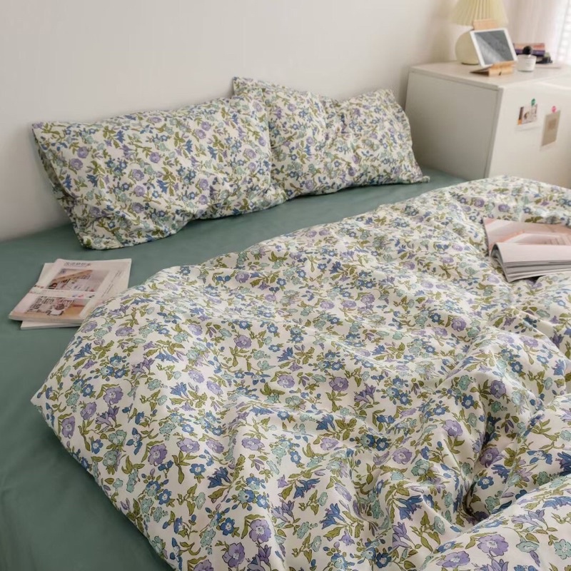 Bộ chăn ga cotton living 4 món nhập khẩu cao cấp. chăn ga cotton hoạ tiết hoa nhí vintage nhẹ nhàng dành cho các nàng ther 😍😍❣️ Set ga gối cotton gồm: