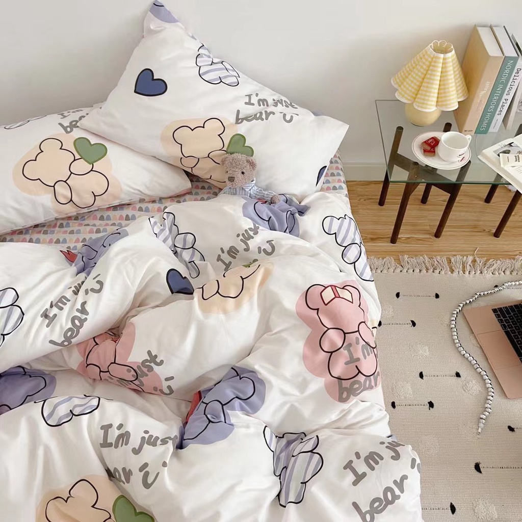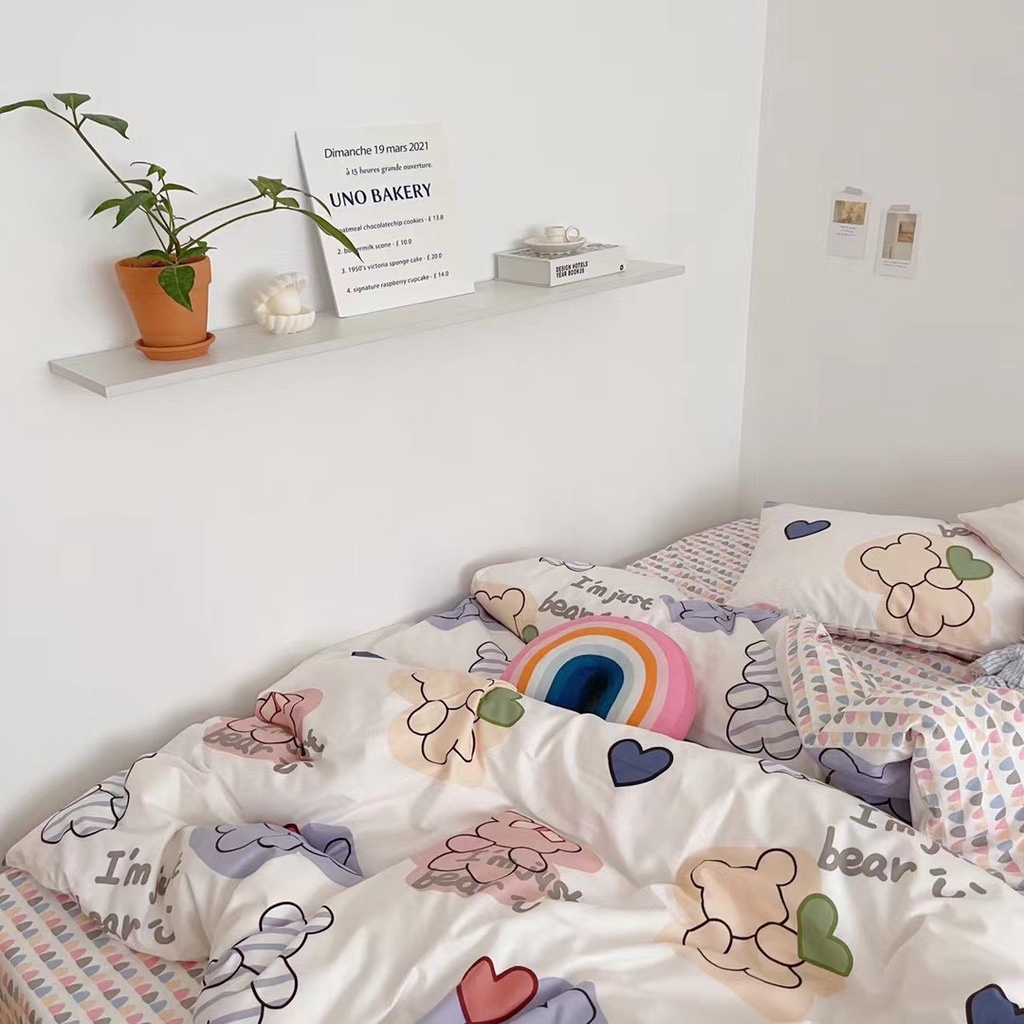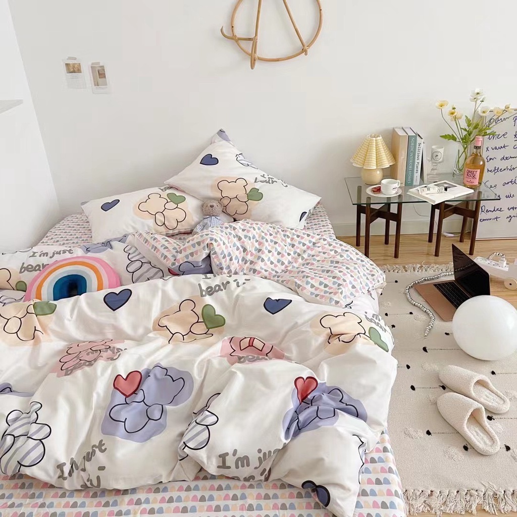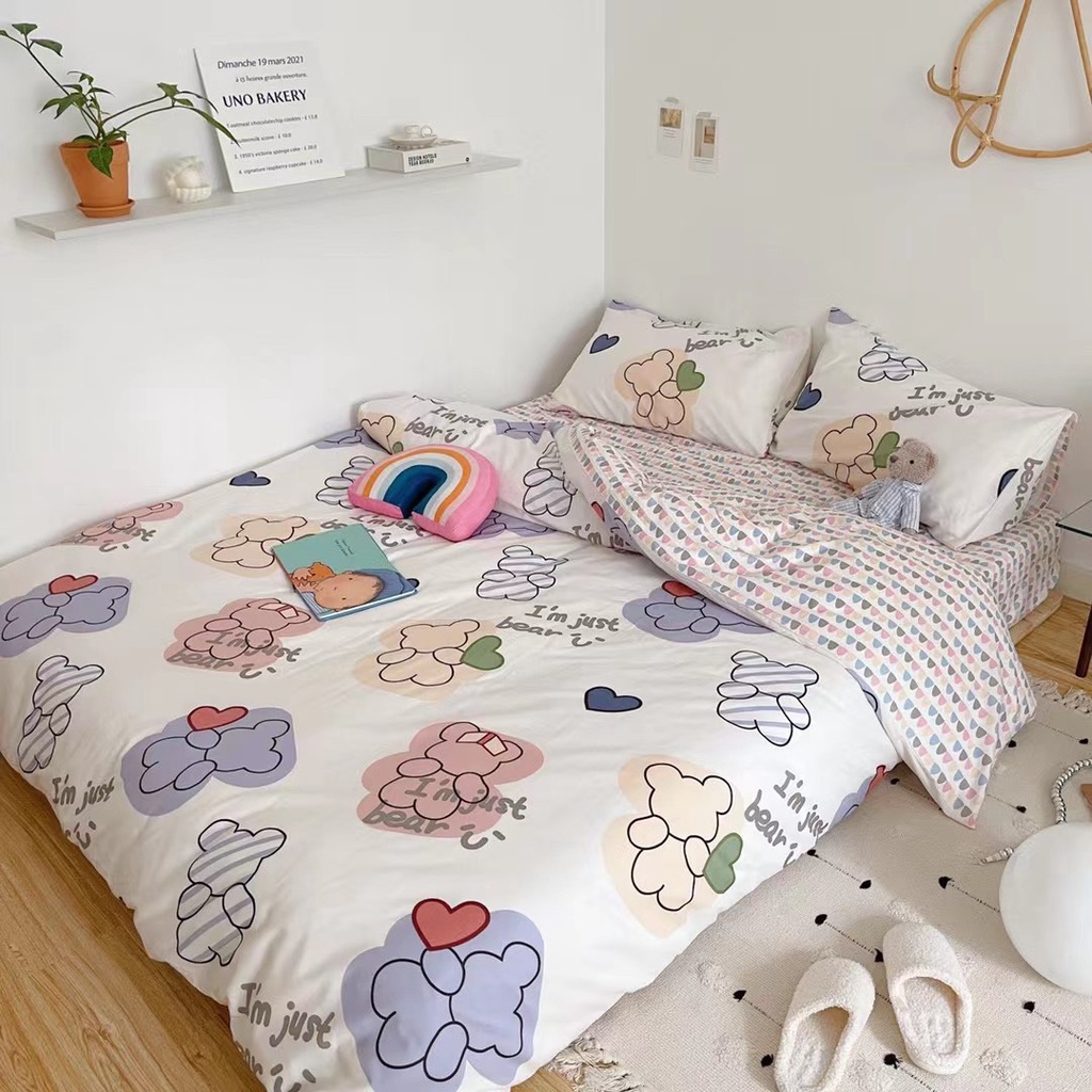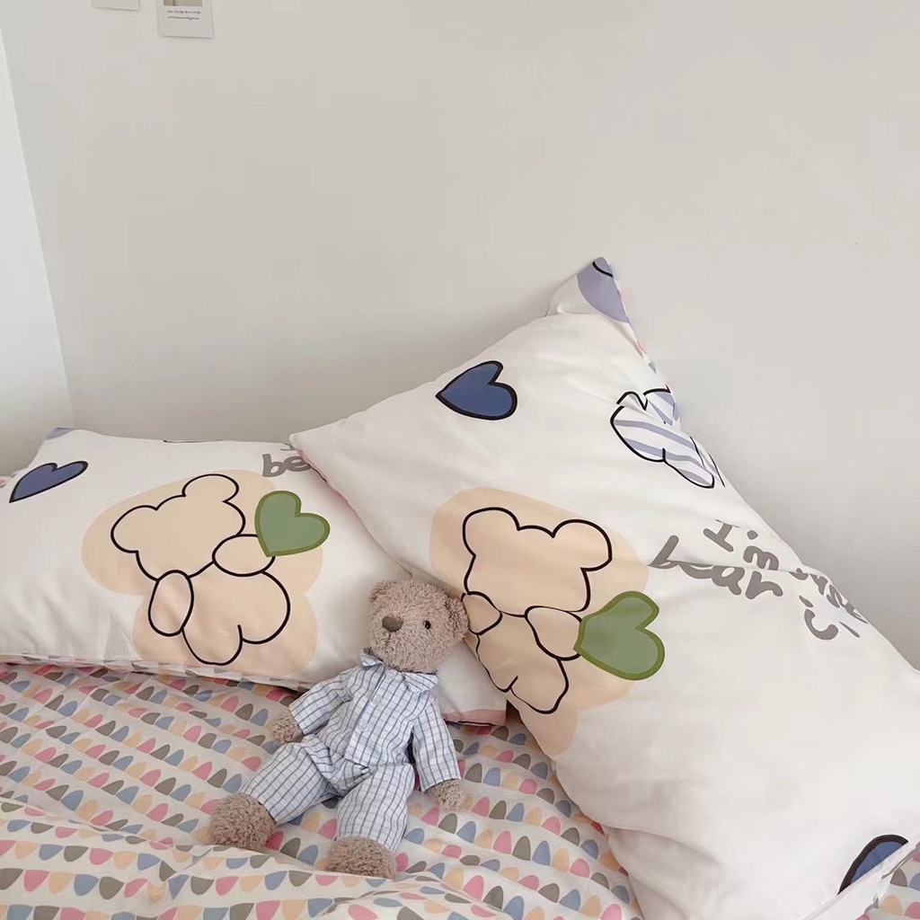 Nhà cửa & Đời sống > Chăn ga gối nệm > Khác || Bộ chăn ga gối cotton living nhập khẩu lonnabedding họa tiết gấu tim ( full size)Còn hàng