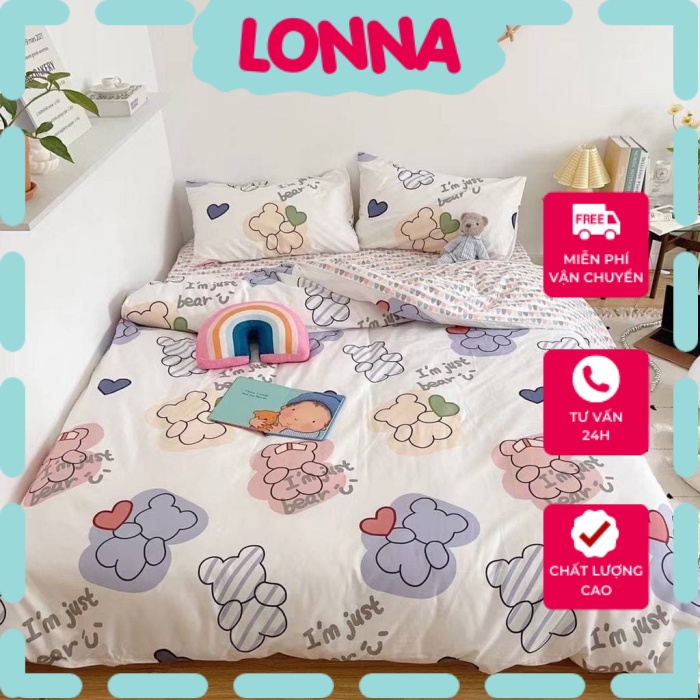 Bộ chăn ga gối cotton living nhập khẩu lonnabedding họa tiết gấu tim ( full size)
