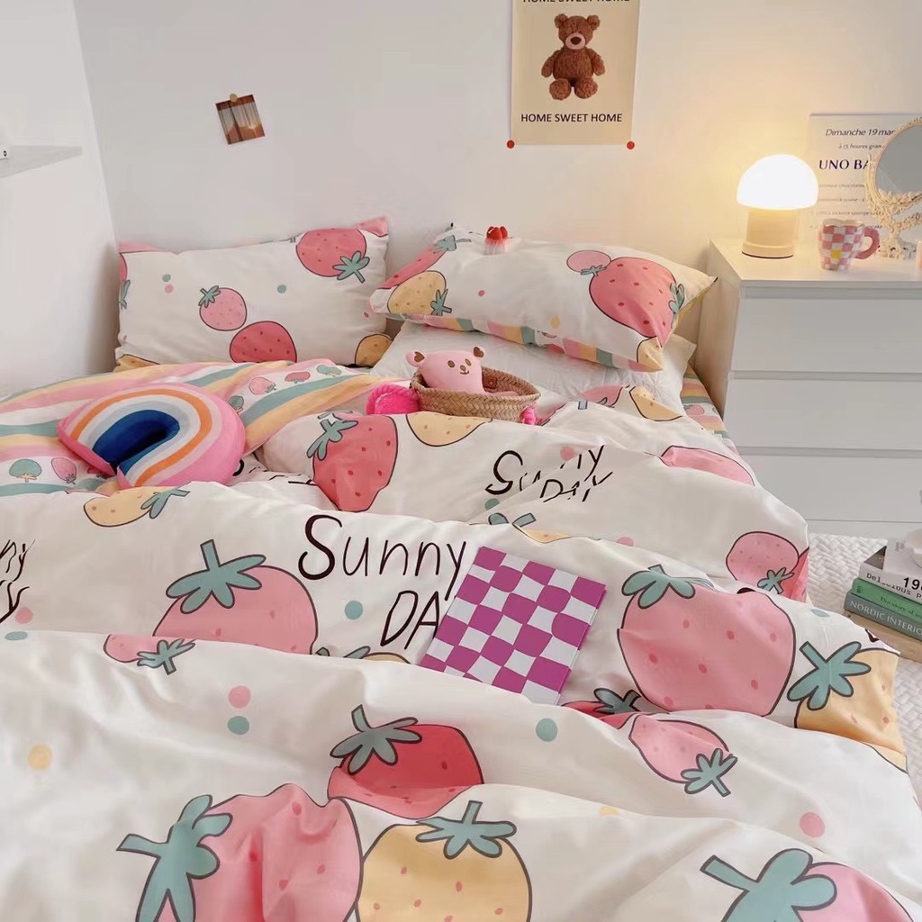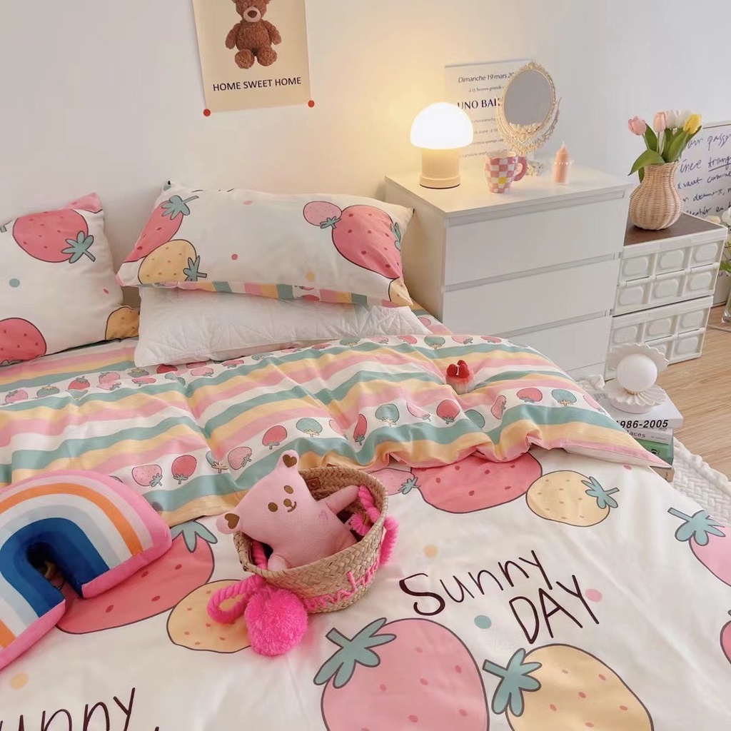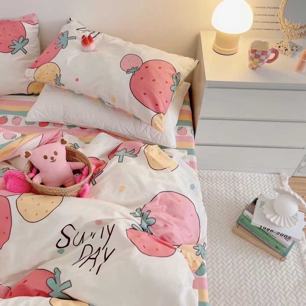 Nhà cửa & Đời sống > Chăn ga gối nệm > Khác || bộ chăn ga gối cotton living nhập khẩu lonaabedding họa tiết dâu tây sunny day ( full size)Còn hàng