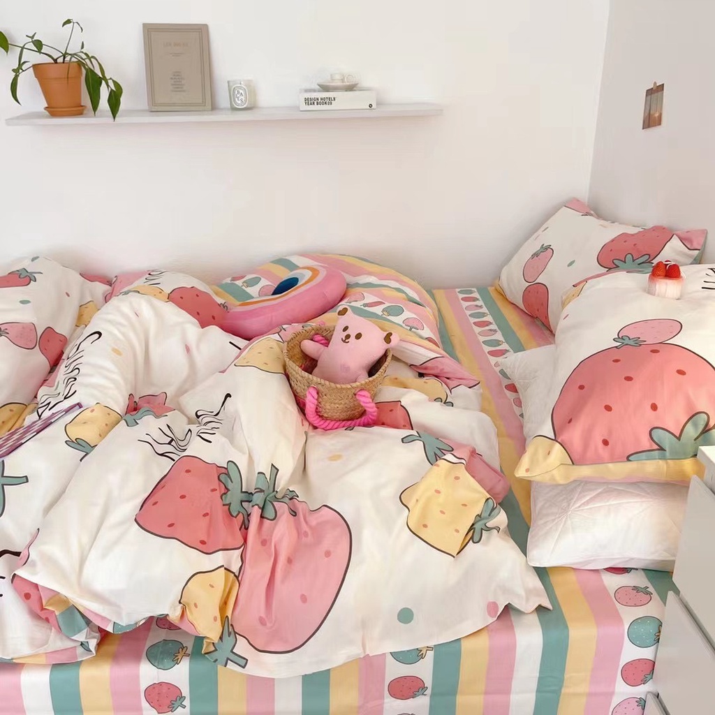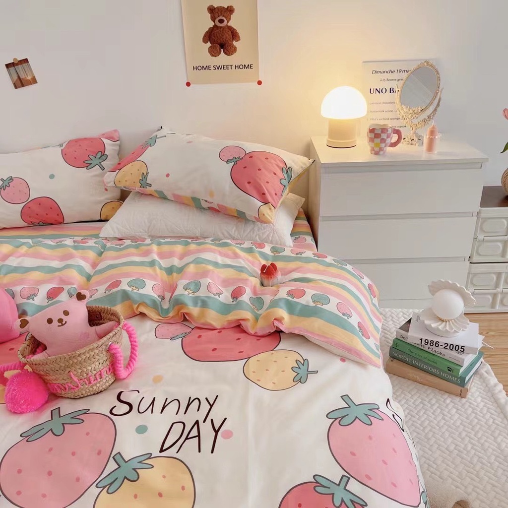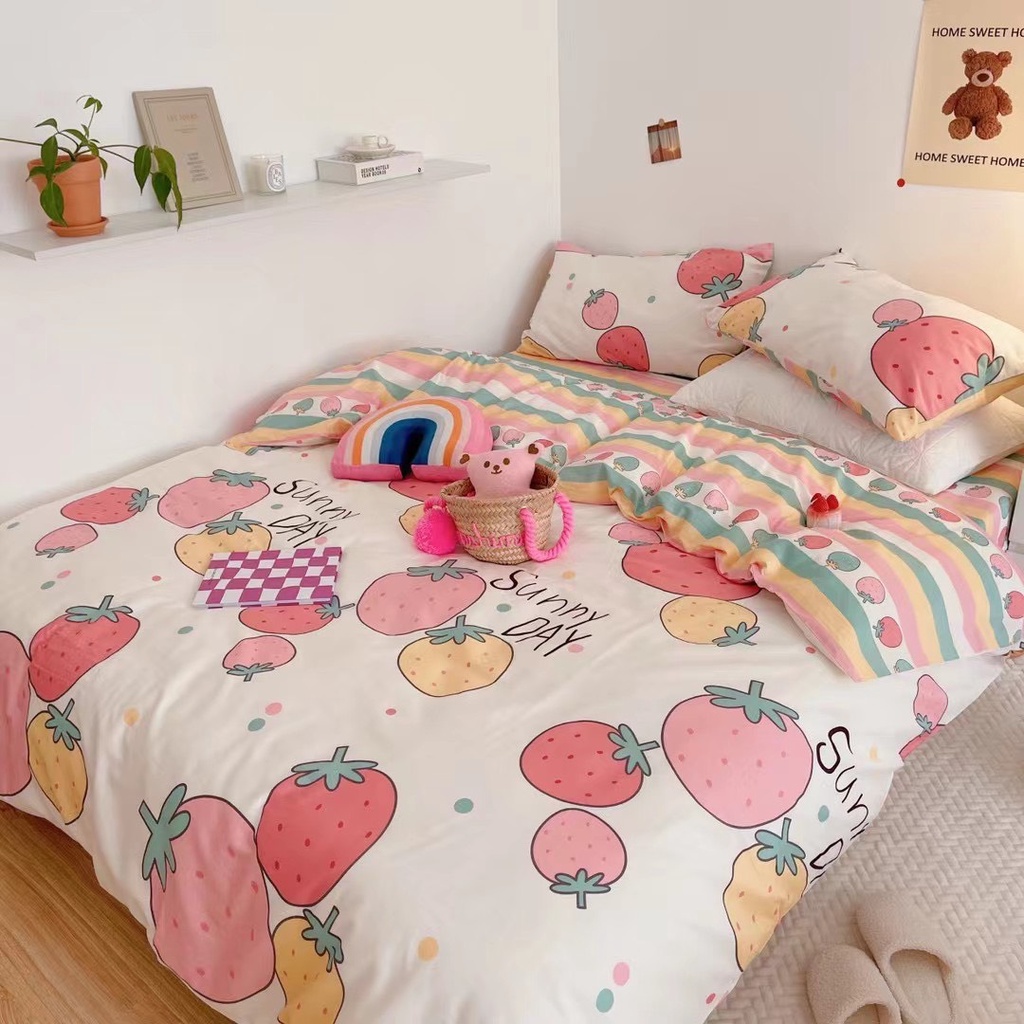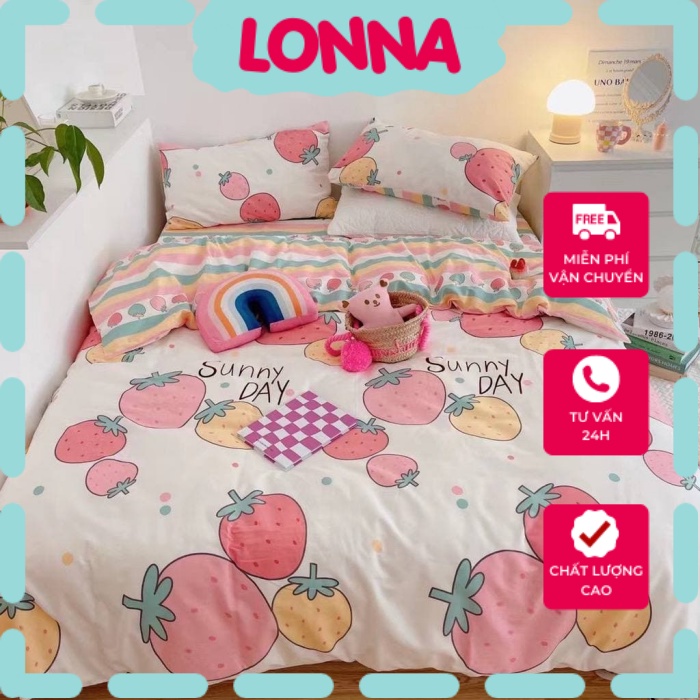 Nhà cửa & Đời sống > Chăn ga gối nệm > Khác || bộ chăn ga gối cotton living nhập khẩu lonaabedding họa tiết dâu tây sunny day ( full size)Còn hàng