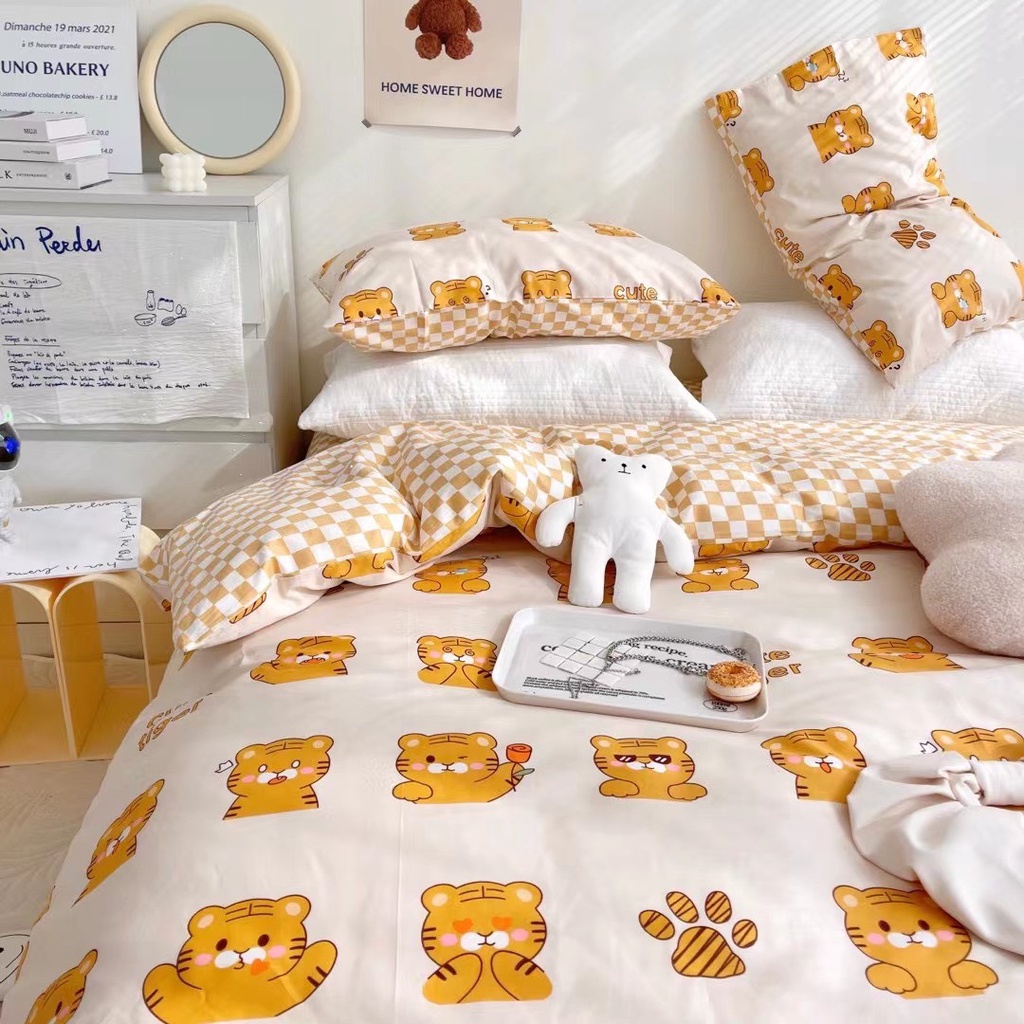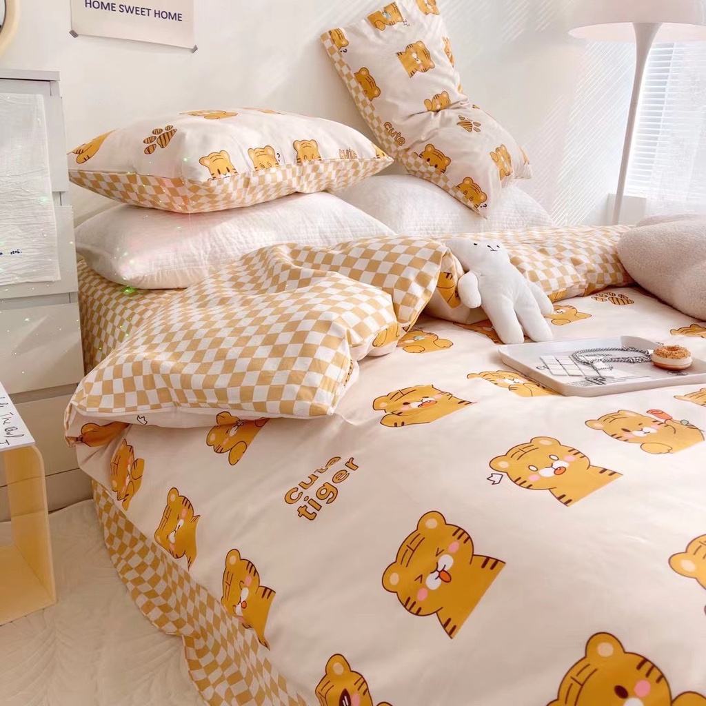 bộ chăn ga gối cotton living lonaabedding hổ vàng style tiger ( full size)