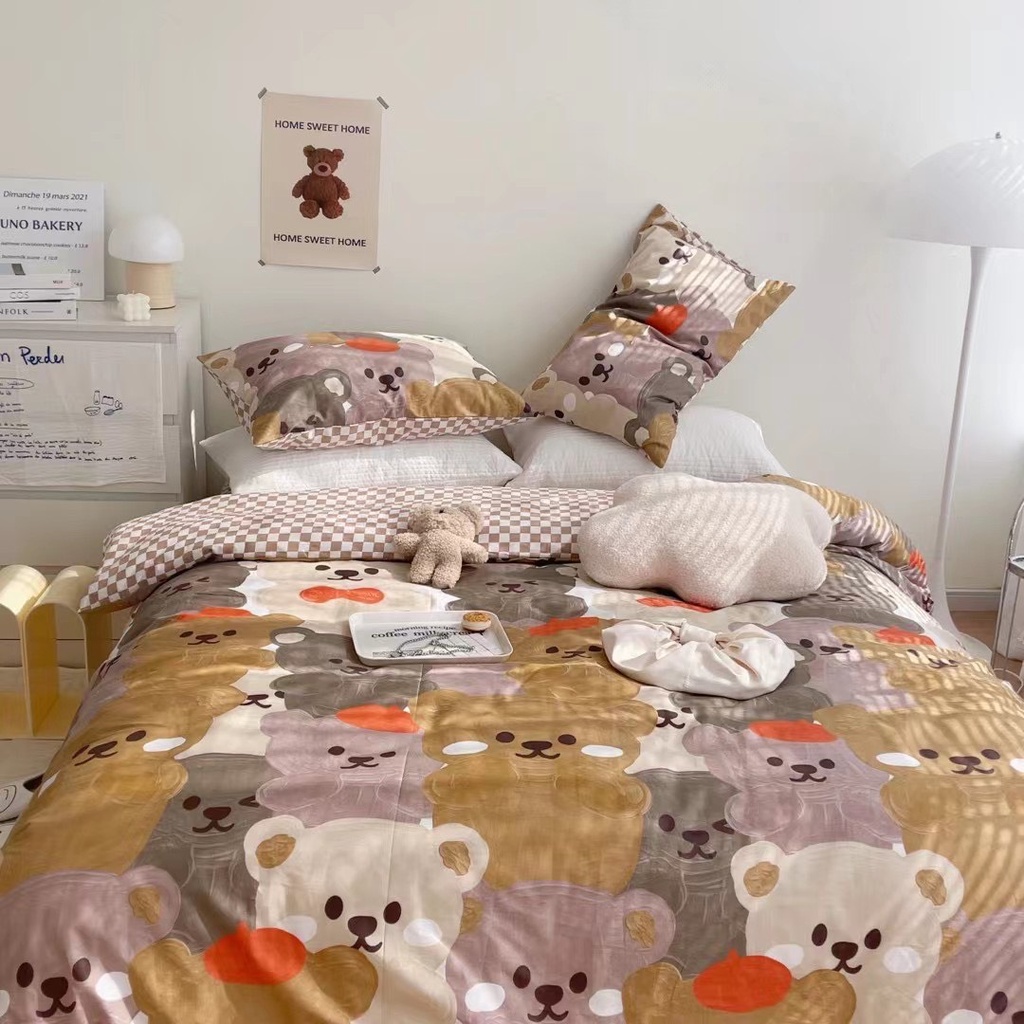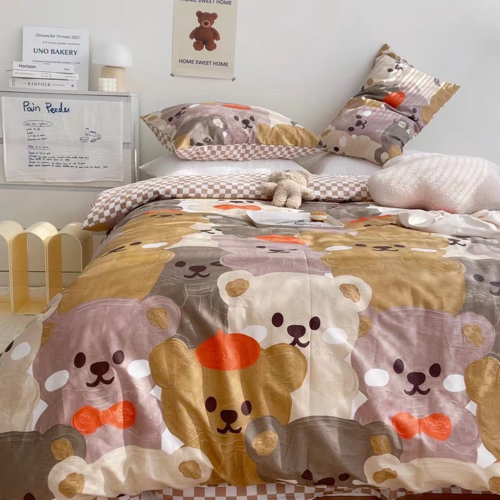 Nhà cửa & Đời sống > Chăn ga gối nệm > Khác || bộ chăn ga gối cotton living lonaabedding họa tiết gấu nhiều màu ( full size)Còn hàng