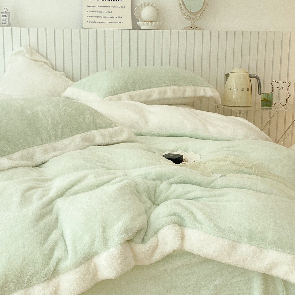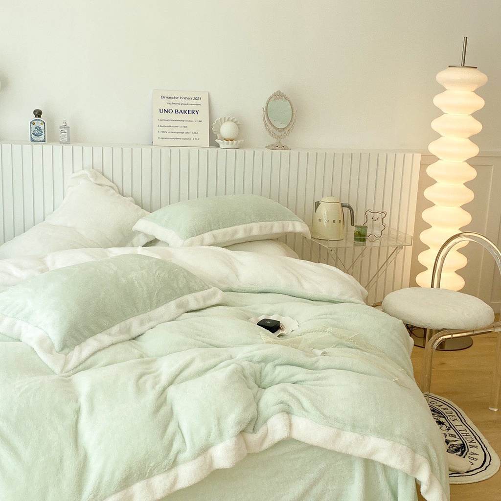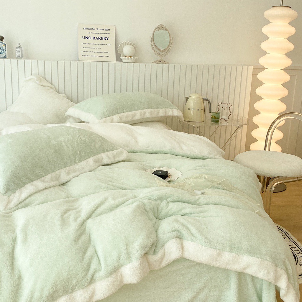 Nhà cửa & Đời sống > Chăn ga gối nệm > Khác || bộ chăn ga gối nỉ nhung tuyết sữa lông ngắn lonaabedding xanh mint ( full size)Còn hàng