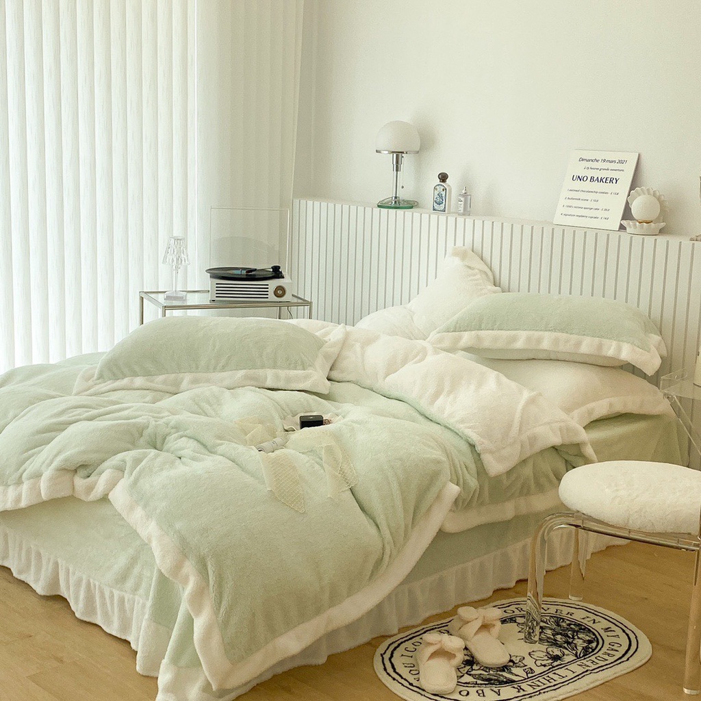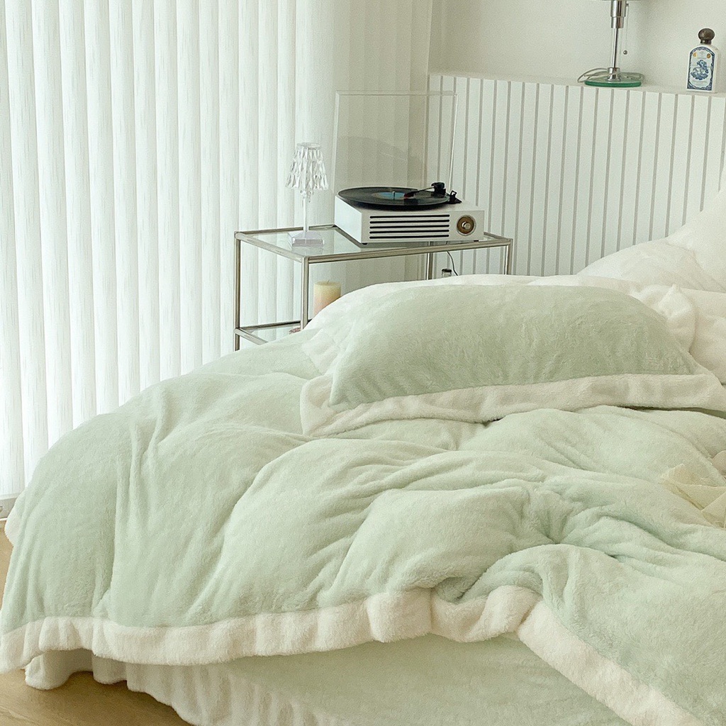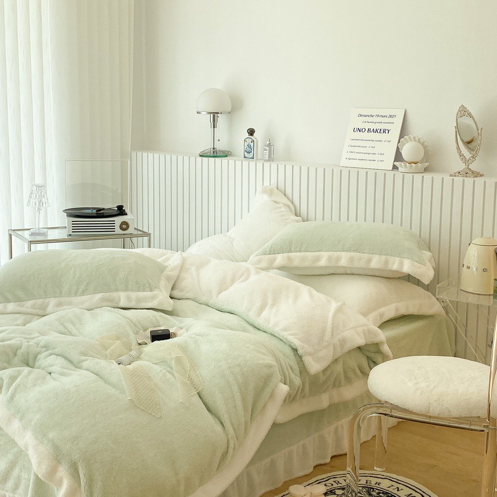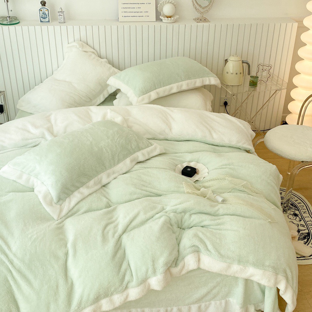 Nhà cửa & Đời sống > Chăn ga gối nệm > Khác || bộ chăn ga gối nỉ nhung tuyết sữa lông ngắn lonaabedding xanh mint ( full size)Còn hàng