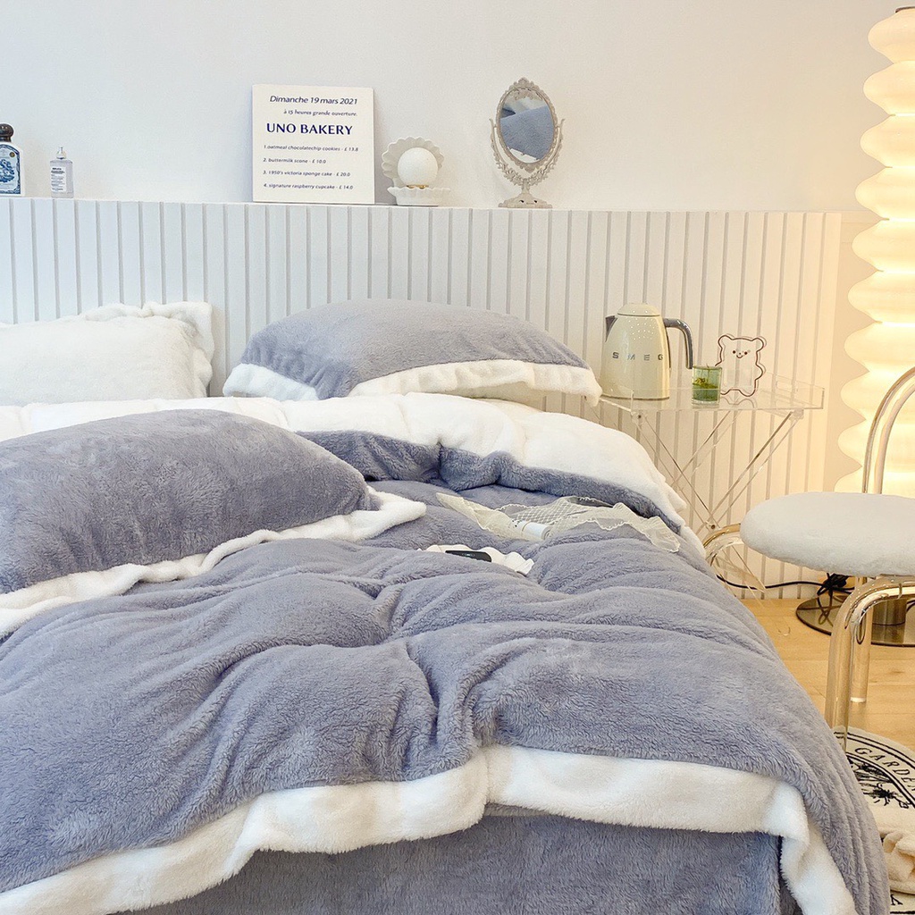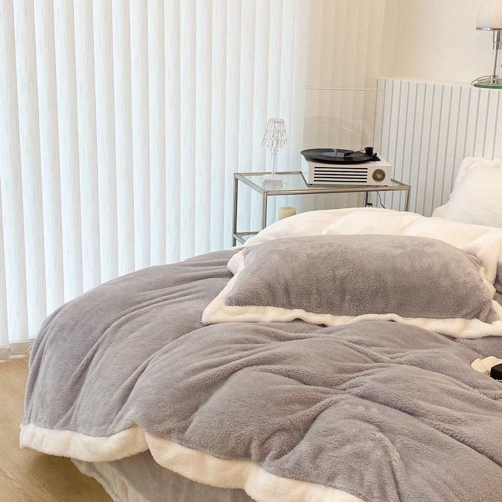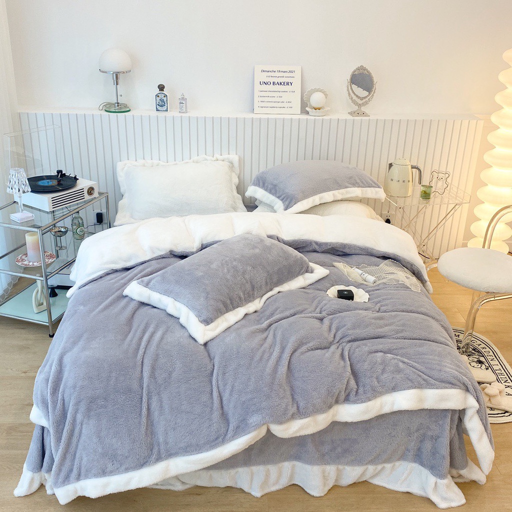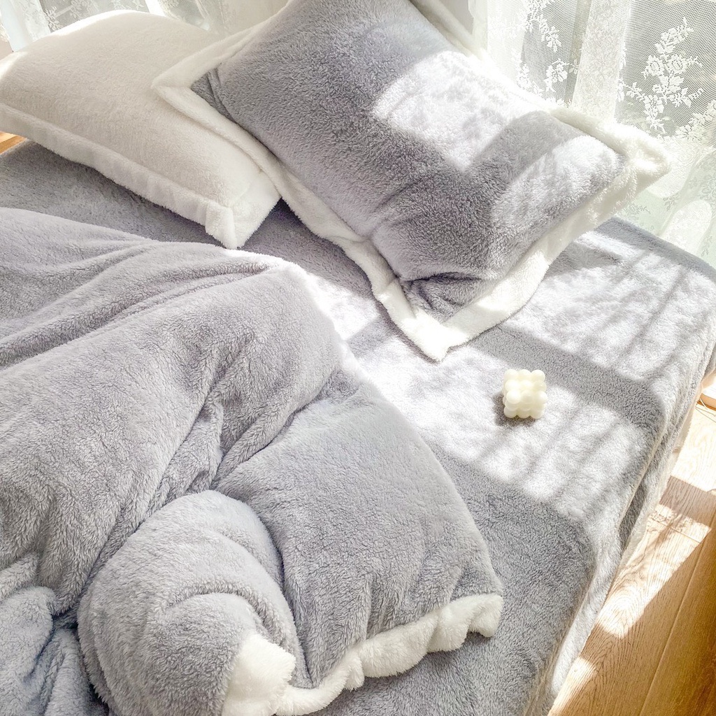 Nhà cửa & Đời sống > Chăn ga gối nệm > Khác || bộ chăn ga gối nỉ nhung tuyết sữa lông ngắn lonaabedding màu xám ( full size)Còn hàng