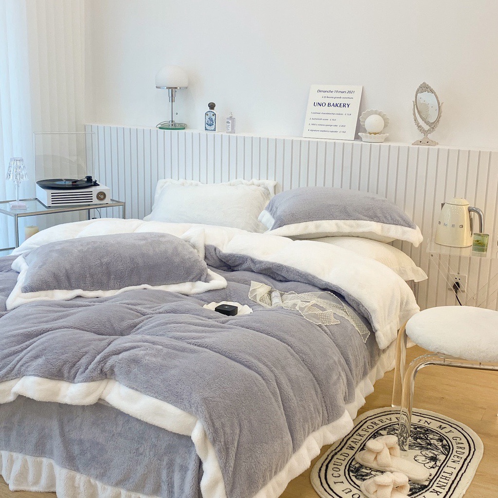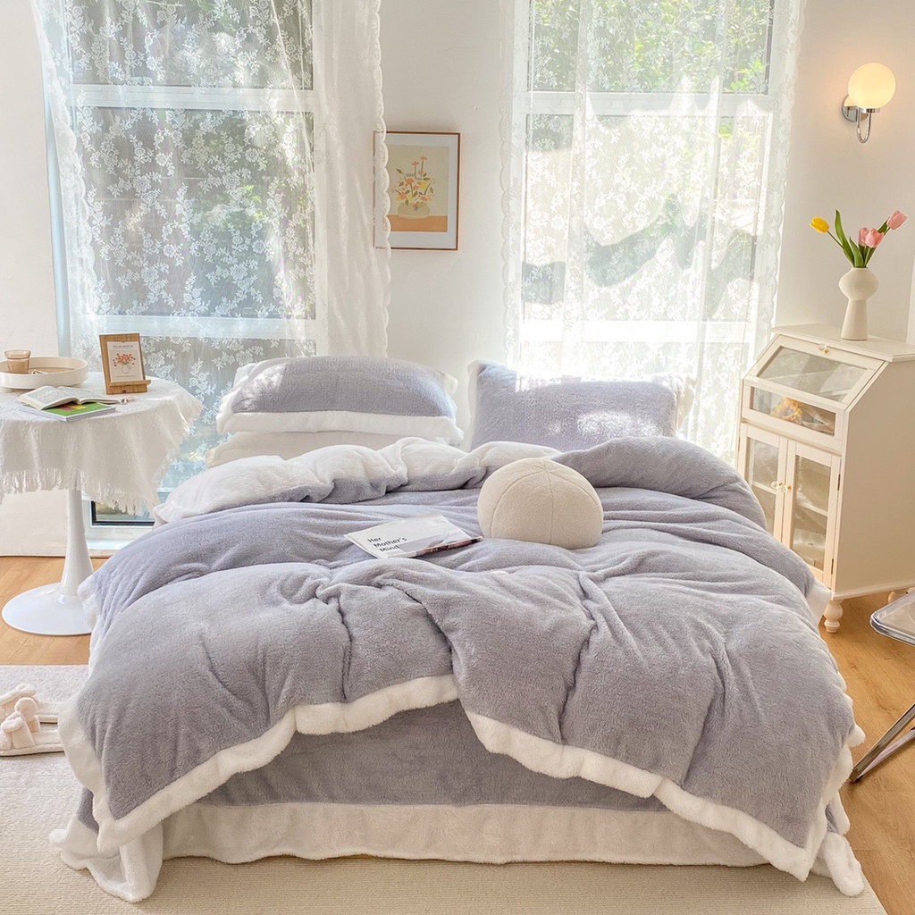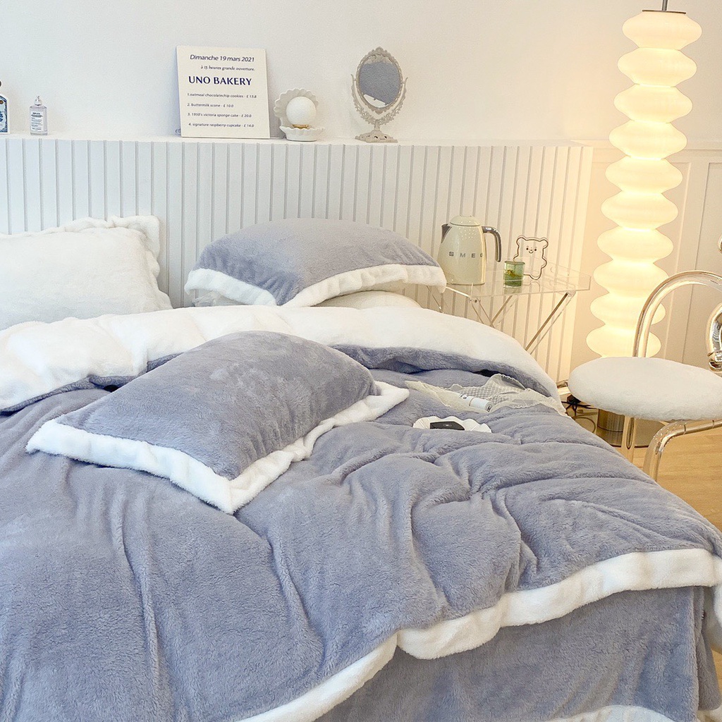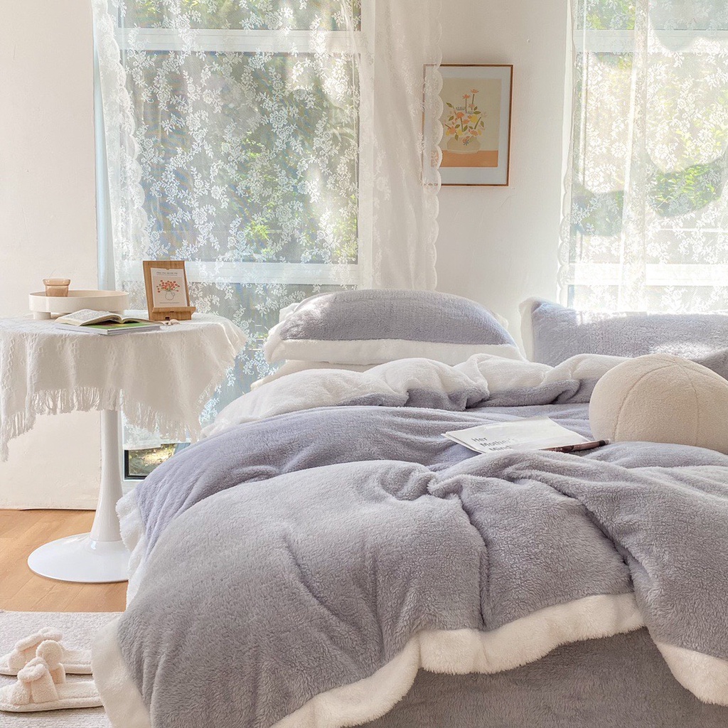 Nhà cửa & Đời sống > Chăn ga gối nệm > Khác || bộ chăn ga gối nỉ nhung tuyết sữa lông ngắn lonaabedding màu xám ( full size)Còn hàng