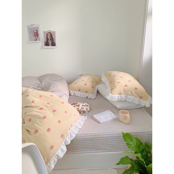 - Set 4 món tiêu chuẩn gồm : 2 vỏ gối 48*74/ Vỏ chăn 200*230/ Ga free size 245*250