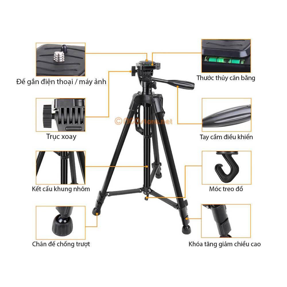 Giới thiệu Chân Giá Đỡ Điện Thoại, Gậy chụp hình tripod 3366 cao 1m5 có tay cầm, tặng kẹp và túi, Dậy học online - Fphone