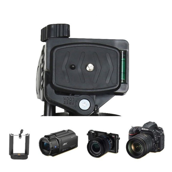 Phần ốc trên đỉnh Tripod có kích cỡ ¼ inch tiêu chuẩn chung, phù hợp với hầu hết các loại máy ảnh du lịch Mini hiện nay. Kẹp điện thoại đi kèm tripod 3366 có thể kéo dài và thu gọn từ 5cm-10cm và khóa chốt chắc chắn.