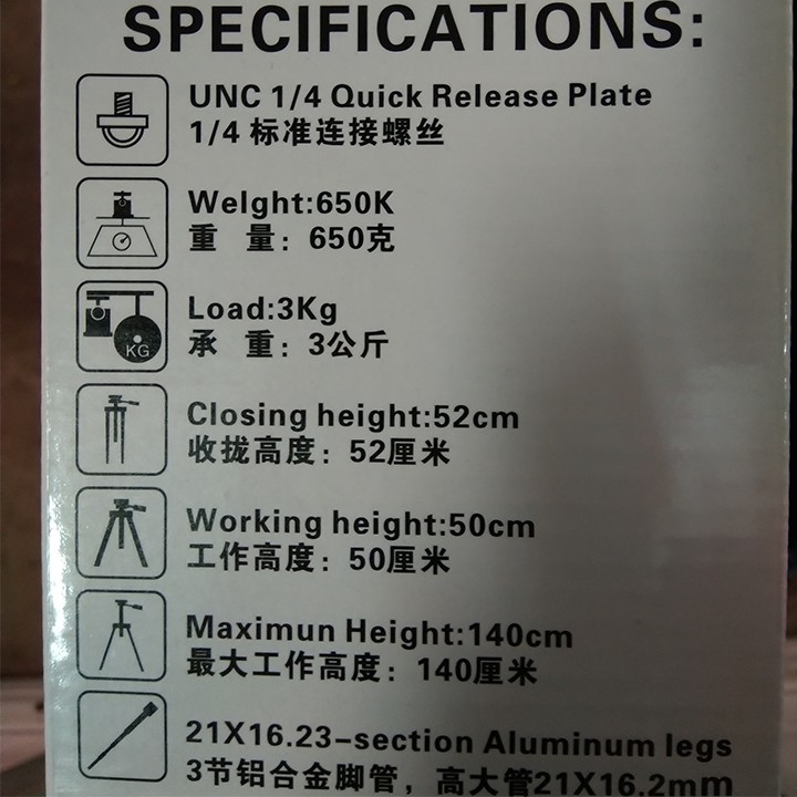 Tripod 3366 có thể chịu đựng được những loại máy có tải trọng lên đến 3 kg. Chân máy có thể rút ngắn, kéo dài từ 50cm-140cm. Các chốt trên thân Tripod bám chặt mỗi khi khóa giúp bạn có thể an tâm nháy ảnh mà vẫn không sợ sụp chân Tripod.