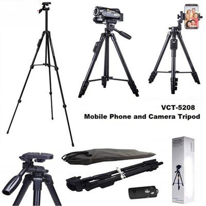 Cameras & Flycam > Phụ kiện máy ảnh > Chân máy ảnh || Chân giá đỡ Tripod 5208 thân Đen cao 125cm đa năng.So sánh giá ×