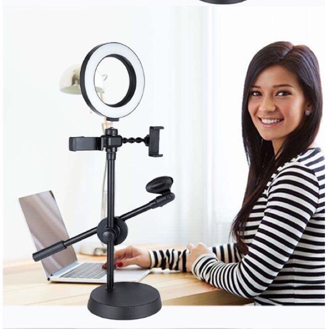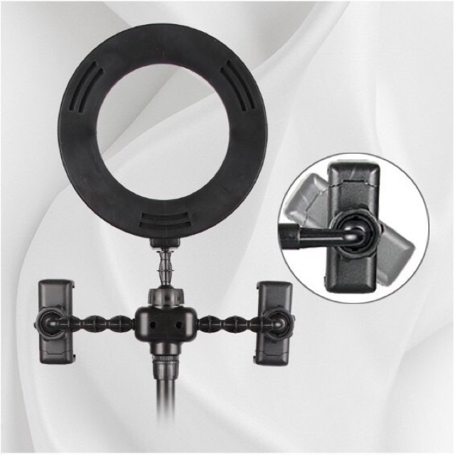 ▶ Chân đế kẹp 2 điện thoại kèm đèn LED siêu sáng dùng cho live stream chuyên nghiệp