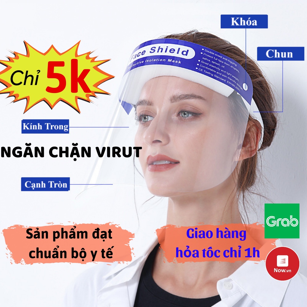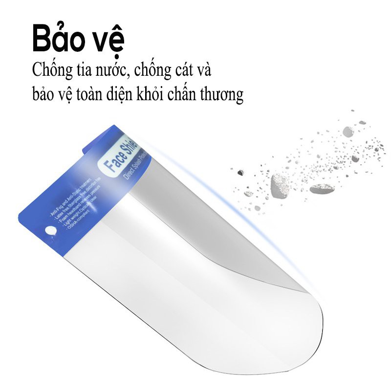 - CHẮN được giọt bắn khi giao tiếp, kính bảo hộ thiết kế vòng cung ôm trọn khuôn mặt bạn.