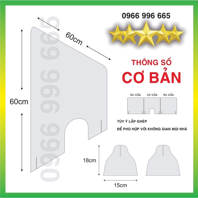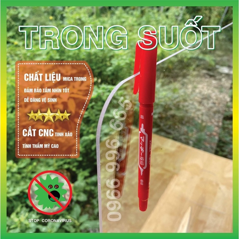 - Chất liệu mica 3mm trong suốt cứng cáp, an toàn, dễ sử dụng, không vỡ như kính