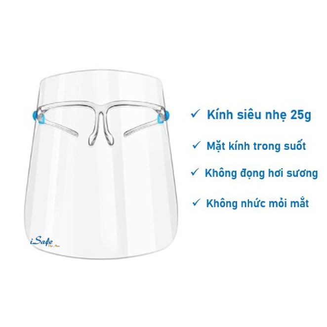 Bộ sản phẩm bao gồm 1 gọng kính + 1 miếng nhựa che mặt trong suốt ( Đã được lắp đặt sẵn )