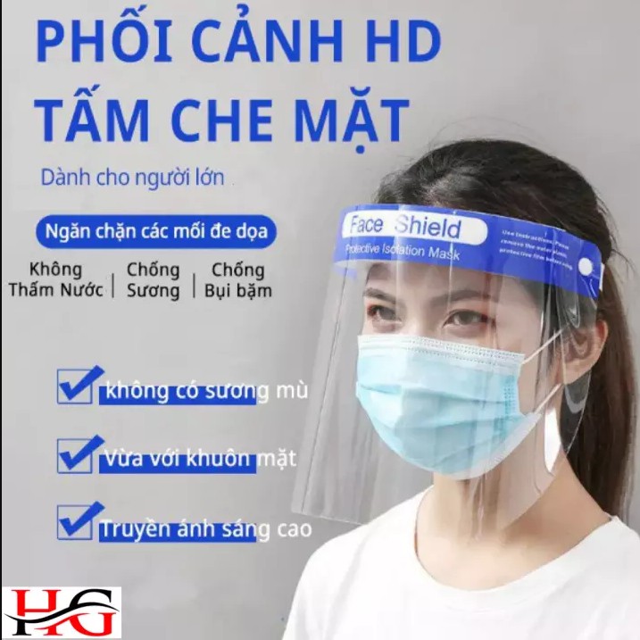 Nhà cửa & Đời sống > Dụng cụ & Thiết bị tiện ích > Găng tay, kính bảo hộ & mặt nạ || tấm chắn giọt bắn trong suốt Face Shield Mask, Kính Chắn Giọt Bắn nhựa PET Phòng Chống Bụi Và Vi KhuẩnCòn hàng