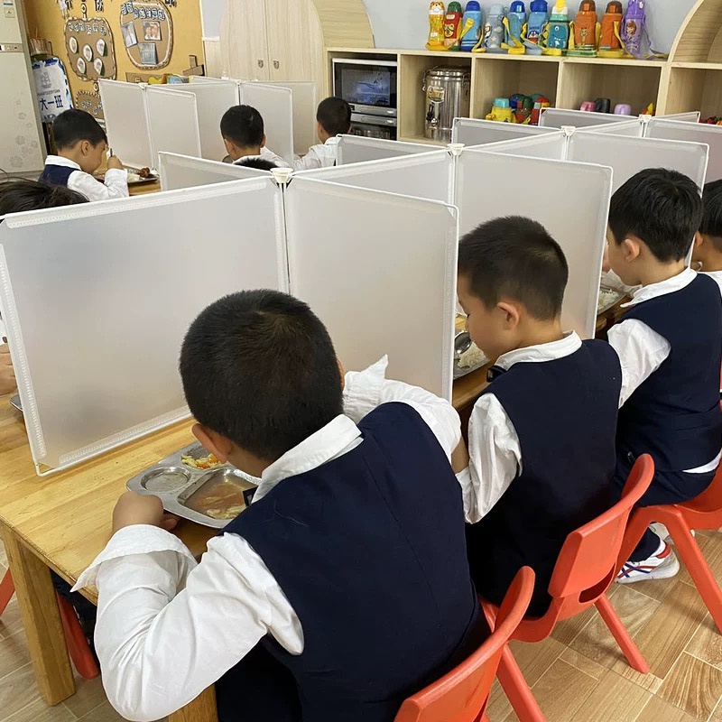 Tấm chắn giọt bắn, Vách ngăn bàn làm việc, Bàn Ăn bằng nhựa trong suốt và nhiều màuTặng đủ 2 chốt cho một tấm