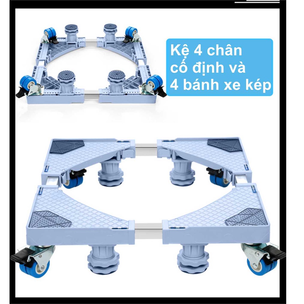 Chân đế có thể thay đổi được cả chiều dài và chiều rộng tùy chỉnh theo kích thước máy giặt, tủ lạnh.