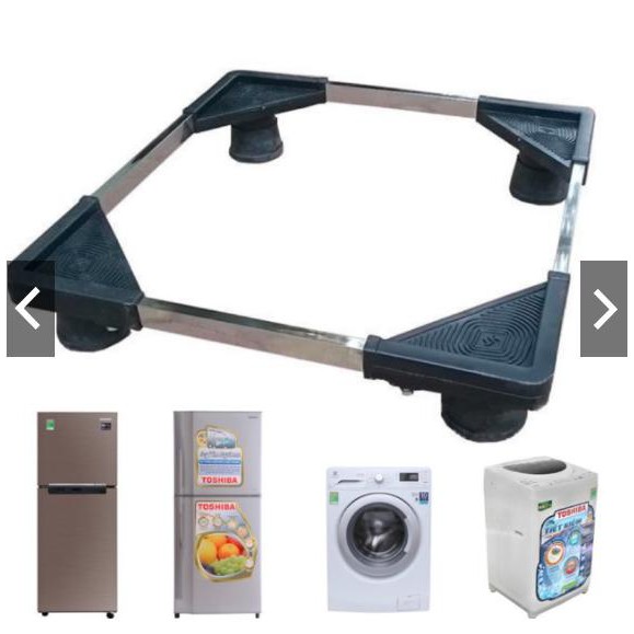+ Chân Kệ Tủ Lạnh, Chân Kệ Máy Giặt Khung Inox Có Đế Chống Rung Điều Chỉnh Được Kích Thước sử dụng cho tất cả các loại máy giặt, tủ lạnh với tất cả các kích cỡ khác nhau.