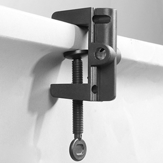 Kẹp ngang bàn, hoặc kẹp dọc thanh đứng, có thể khoan vào tường nếu không kẹp vừa bàn.