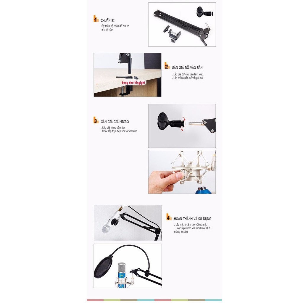 Giới thiệu Chân Kẹp Mic Và Màng Lọc Thu Âm Microphone NB35 - Giá Đỡ Kẹp Bàn Gắn Micro Livestream