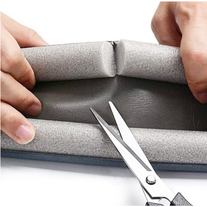 Các bạn có thể lắp mặt trên hoặc dưới của thanh xốp chặn khe cửa đều được. Nếu nó dài hơn cửa, bạn dễ dàng dùng kéo cắt ngắn hơn, còn nếu ngắn hơn, bạn cắt thêm 1 đoạn ngắn lắp vào.