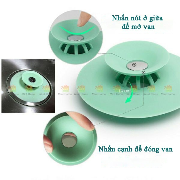 Cách sử dụng: Ấn nút giữa cạnh sẽ gập lại để thoát nước và ấn vào cạnh để đóng van