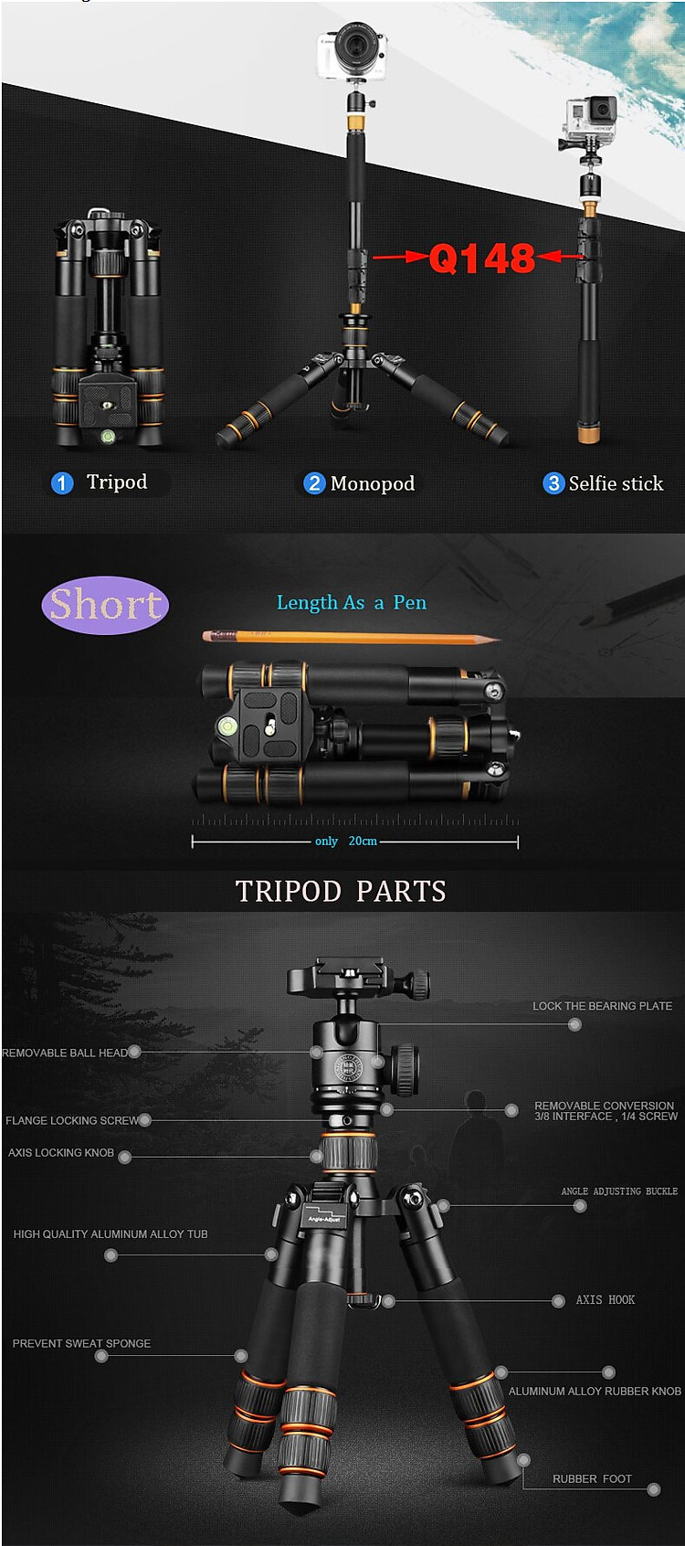 - Model: QZSD-166a- Thân: 3 phần- Đường kính chân tối đa: 22mm- Đường kính chân tối thiểu: 19mm- Vật liệu: hợp kim nhôm- Màu đen- Chiều cao tối đa: 555mm- Chiều cao gấp: 200mm- Tải tối đa: 5kg Tính năng sản phẩm: - Thiết kế gập 180 độ- Thân máy bằng hợp kim nhôm nhẹ- Nền tảng đầu ren kép đảm bảo khả năng tương thích với hầu hết mọi đầu và chân máy ảnh- Móc trọng lượng lò xo cho phép gắn thêm trọng lượng để tăng cường sự ổn định trong điều kiện gió- Cột trung tâm đảo ngược và chân đa vị trí cho phép chụp góc thấp- Được xây dựng ở cấp độ bong bóng để định vị chính xác- Bọt chống trượt để sử dụng thoải mái- Các góc chân có thể điều chỉnh có thể được khóa độc lập vào vị trí ở 3 góc khác nhau để cho phép chụp môi trường chuột rút hoặc các khu vực bề mặt không đều.