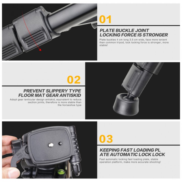 Chân cột 4 phần với ổ khóa phát hành nhanh chóng cung cấp một lập trường thuận tiện hơn đáp ứng chiều cao của bạn mong muốn khi chụp