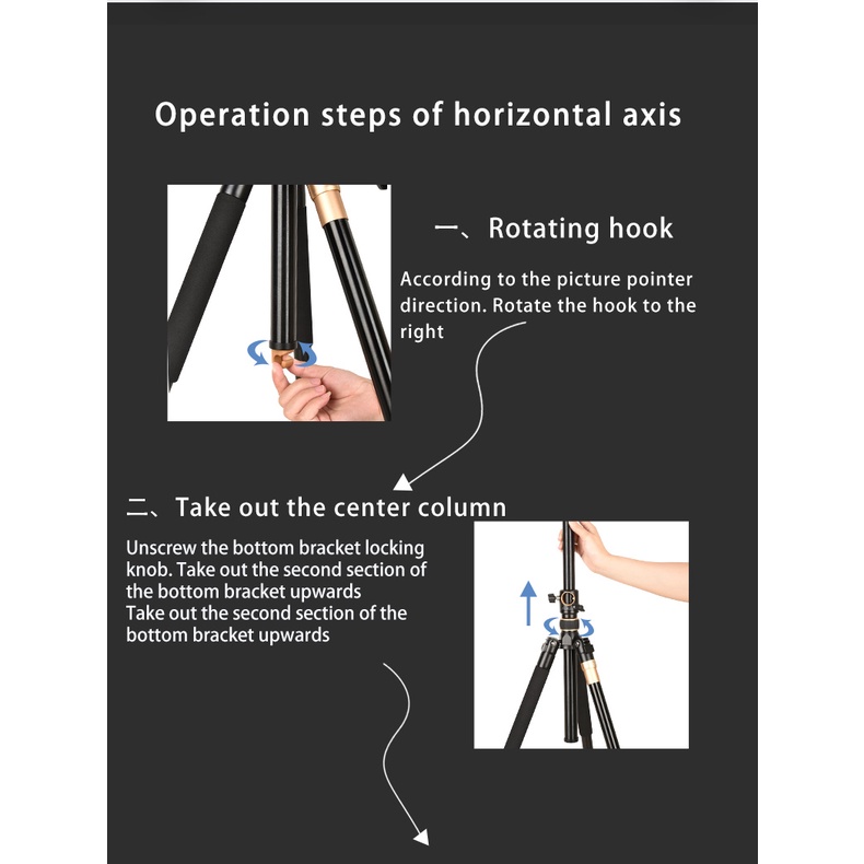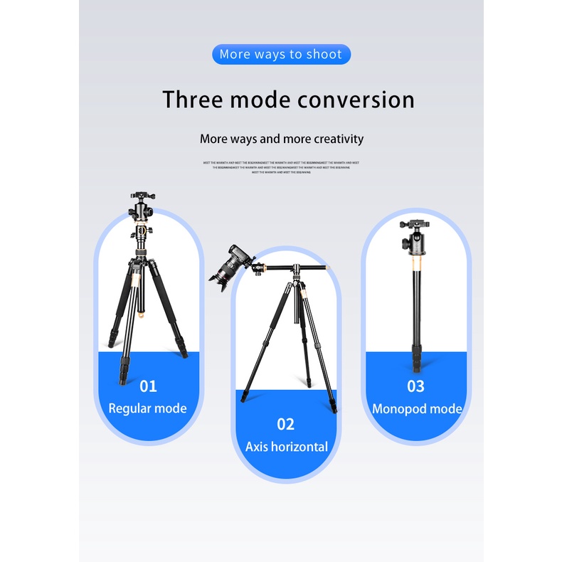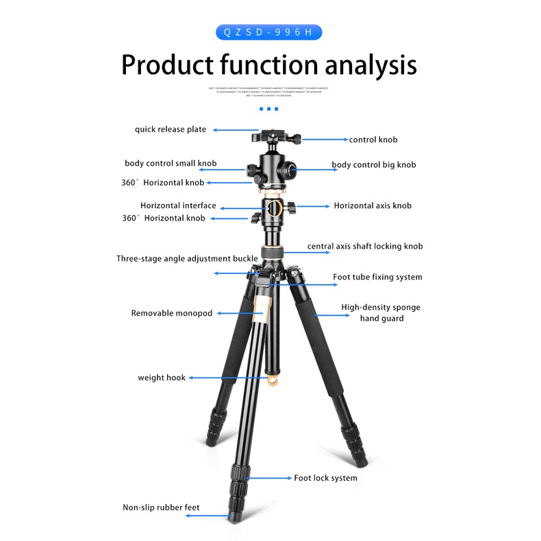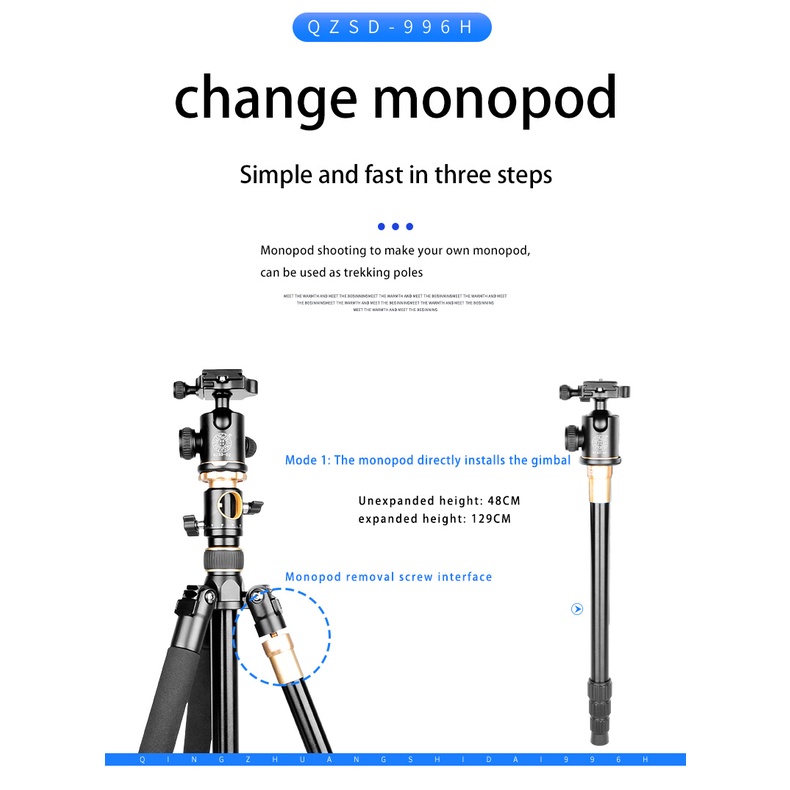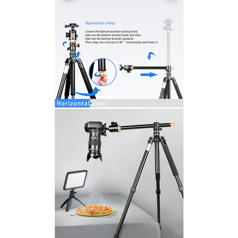 - Chân máy đơn chuyên nghiệp 2 trong 1 bằng nhôm định hình 90 độ Q996H với hai trục trung tâm, thích hợp cho máy ảnh SLR video kỹ thuật số có máy ảnh chân máy.