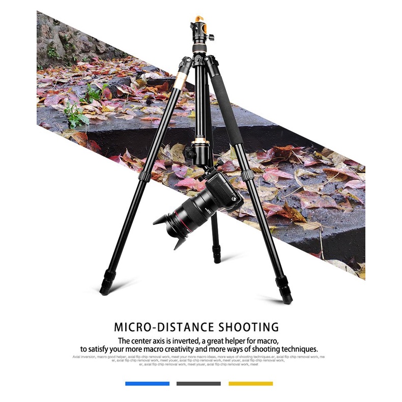 - Chân máy đơn chuyên nghiệp 2 trong 1 bằng nhôm định hình 90 độ Q996H với hai trục trung tâm, thích hợp cho máy ảnh SLR video kỹ thuật số có máy ảnh chân máy.