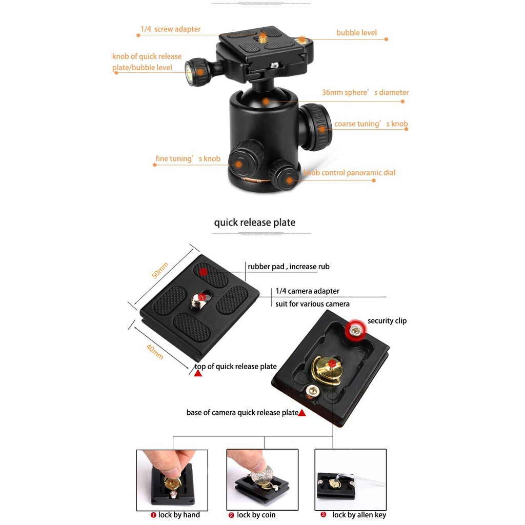 -Sử dụng đầu bi Panorama QZ03, hỗ trợ chụp lia máy theo chiều ngang.
