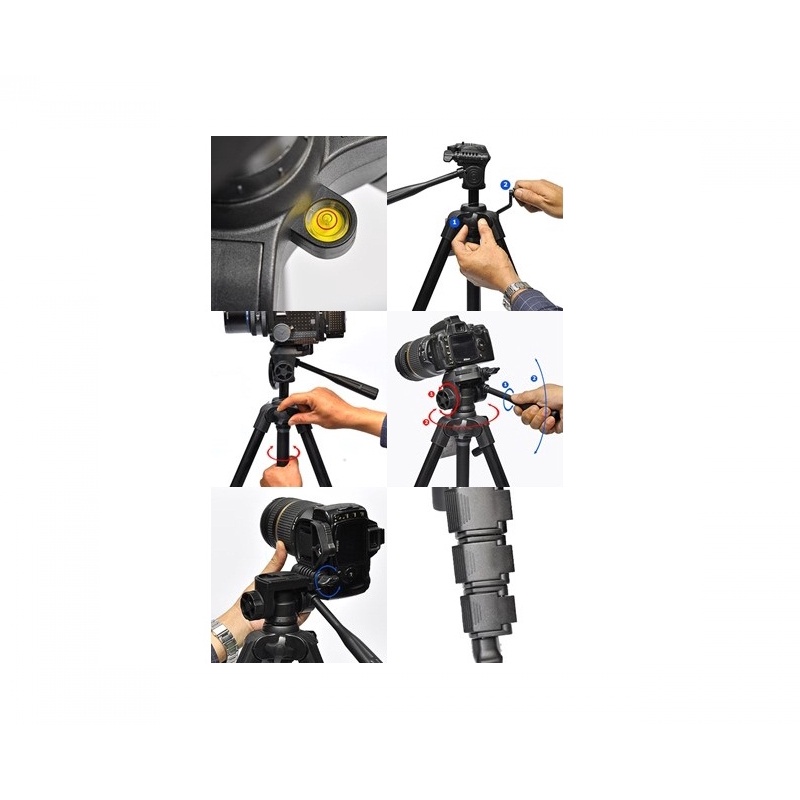 Khi sử dụng máy ảnh có trọng lượng nặng, có thể xoay ống của trục giữa theo chiều kim đồng hồ để góp phần tăng lực ép giữ trụ giữa giúp cố định về chiều cao