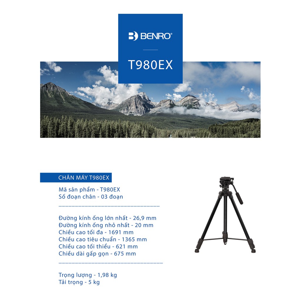Cameras & Flycam > Phụ kiện máy ảnh > Chân máy ảnh || Chân Máy Ảnh Benro T980EX | Chính HãngSo sánh giá ×