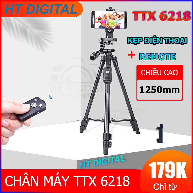 Chân Máy Ảnh Điện thoại, Chân Đế Kiểu Mới Tripod TTX 6218 Tặng kèm remote và túi đựng tiện lợi