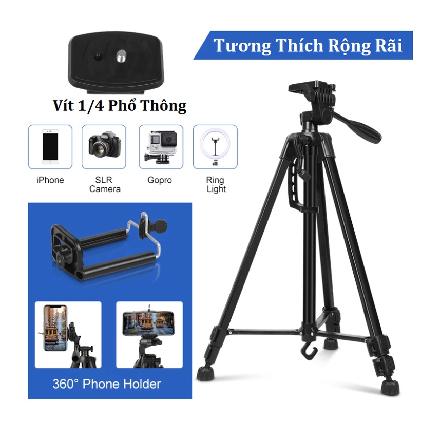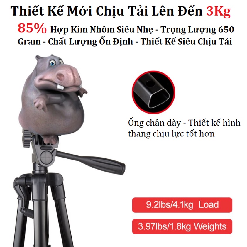 ✅ Chân Máy Ảnh Điện Thoại - Tripod 3301 - Giá Đỡ Điện Thoại Chụp Ảnh - Quay Video - Tiktok - Có Remote Điều Khiển Từ Xa✅ Chân giá đỡ điện thoại, máy ảnh Tripod 3301 có chiều cao 140cm, thiết kế cứng cáp, Tripod 3301 là phụ kiện hỗ trợ quay phim, chụp ảnh chuyên nghiệp, có tích hợp tay cầm rất chắc chắn hỗ trợ quay video rất tiện lợi, phù hợp quay review, livestream, Vlog, Youtuber.., Tripod 3301 được kết cấu hợp kim nhôm nhẹ nhưng vẫn cho sức chịu tải tốt, phù hợp với các bạn đi du lịch, đi phượt…cầm tay gọn nhẹ hoặc bỏ vào balo cũng tiện lợi.