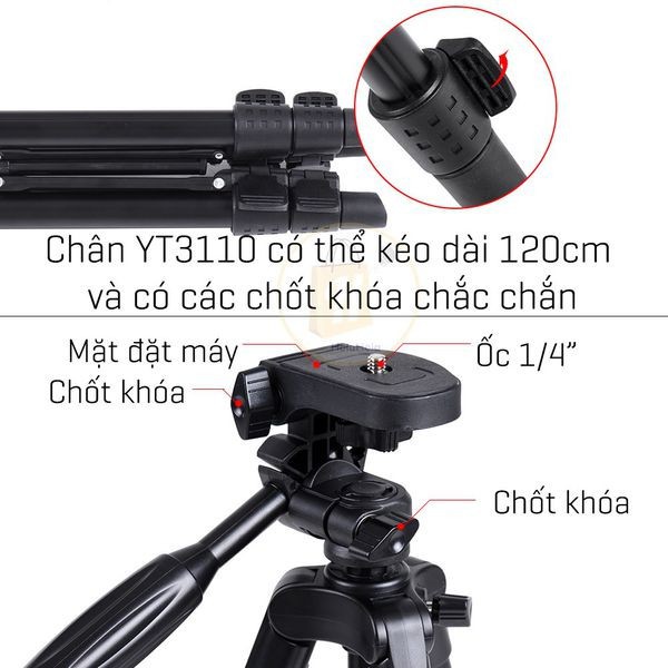 Điện Thoại & Phụ Kiện > Phụ kiện > Phụ kiện selfie > Giá đỡ || Chân máy ảnh, điện thoại Tripod YT-5208 cao tối đa 125cm - tặng kèm remote và đầu kẹp điện thoạiCòn hàng