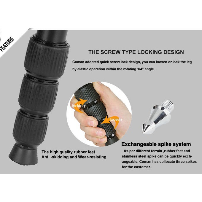 Giới thiệu Chân máy ảnh Monopod Coman DT286C, Carbon