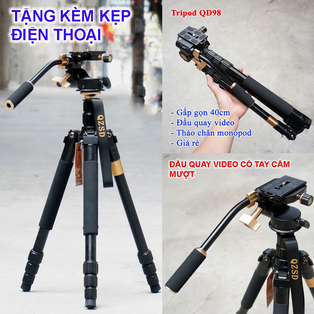 Chân máy ảnh Q999s bản đầu bi + QD98 Bản đầu quay Video