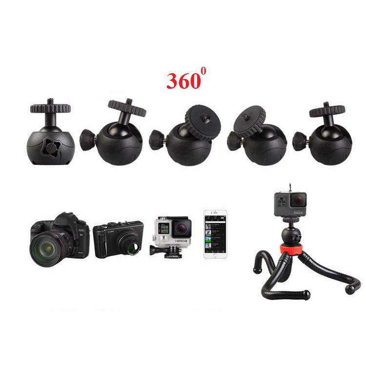 - Ren xoáy chuẩn quốc tế 1/4 inches, tương thích với mọi loại gá kẹp điện thoại, digital camera, Gopro action camera, webcam v.v...