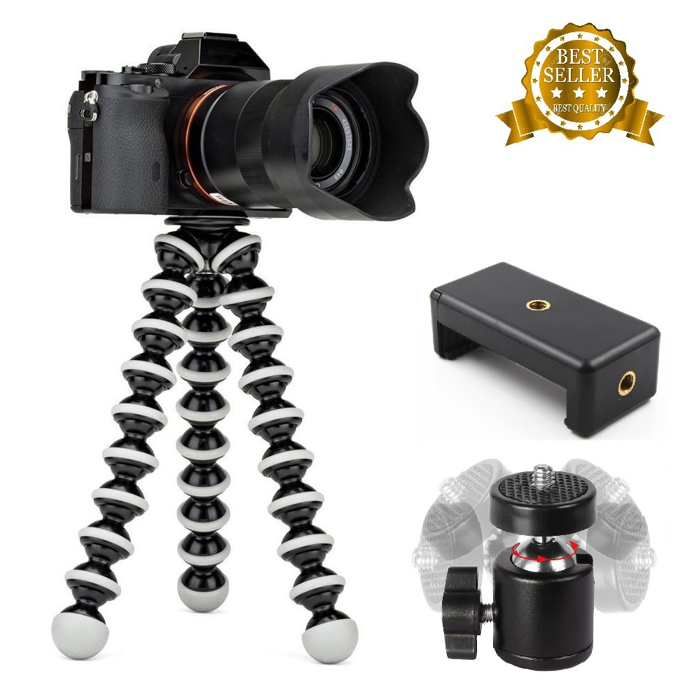 Giới thiệu ✔️✔️ Chân máy ảnh Tripod BẠCH TUỘT loại LỚN 24CM (Trắng Đen) + KÈM 1 BALLHEAD VÀ 1 GÁ KẸP 002