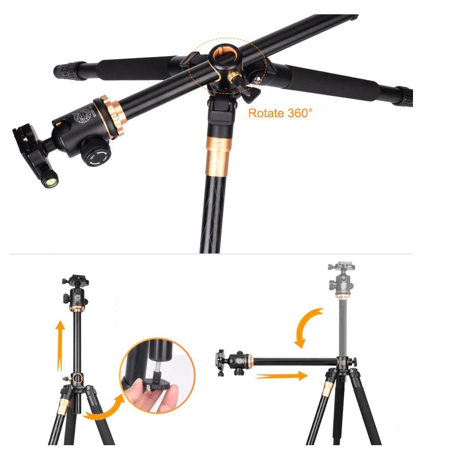 Chân máy ảnh Tripod Beike Q-999H được làm từ hợp kim nhôm siêu nhẹ với khả năng tải tới 8KG.Với thiết kế độc đáo Q999H Beike có thể quay - chụp sản phẩm với những góc chụp từ trên cao và rất nhiều góc hình độc đáo khác.