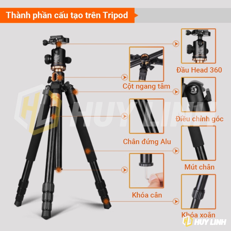 ✅Sử dụng đầu bi Panorama QZ03, hỗ trợ chụp lia máy theo chiều ngang.